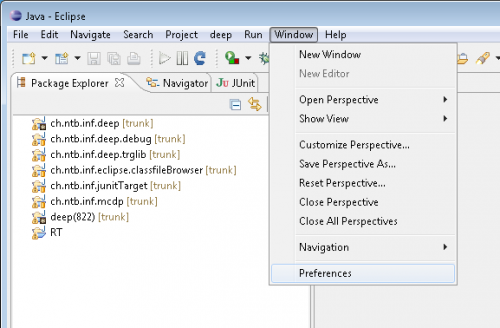 Opening the deep perspective (Window → Open Perspective → Other → Deep Perspective) gives you a set of views appropriate for deep development. It also enables the deep project creation wizard.