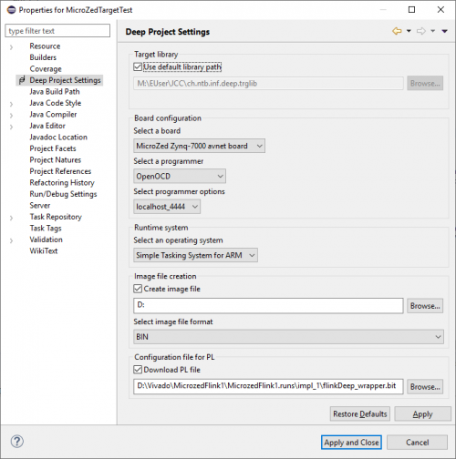 Instead of editing the deep project file manually the settings can be altered by choosing Project → Properties. Alternatively you can press the right mouse button on the project name in the package explorer: