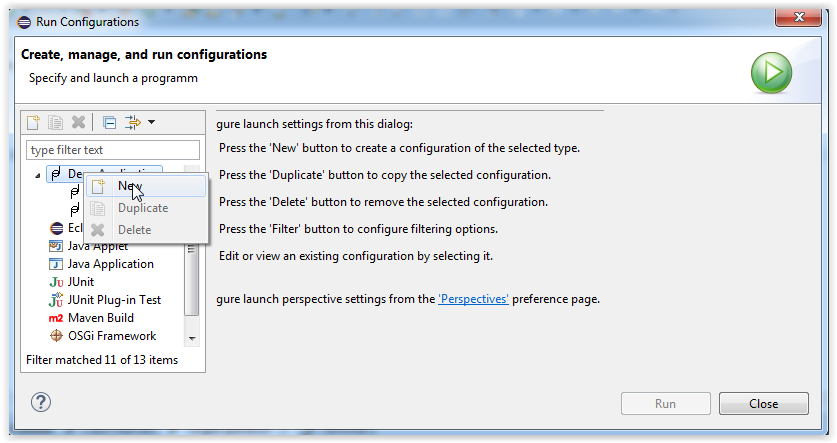 Create a new run configuration by marking the project file HelloWorld.deep. Then, right-click on it and choose Run As → Deep Application.
