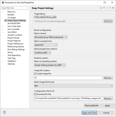 Instead of editing the deep project file manually the settings can be altered by choosing Project → Properties. Alternatively you can press the right mouse button on the project name in the package explorer: