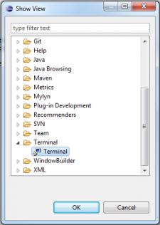 4. Alternatively, in eclipse you can use the terminal view. Open View Dialog under Window → Show View → Other