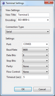 In the category Terminal mark Terminal and confirm with OK. Under Connection Type select Serial and choose settings according to the settings of the SCI on the target.